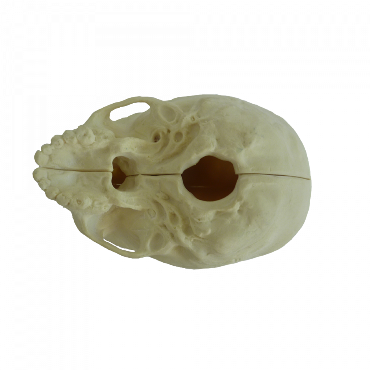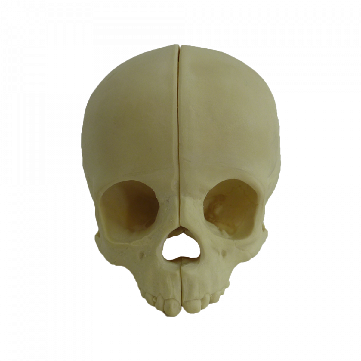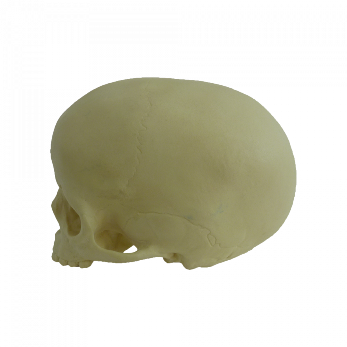 Desenvolvido à partir de um crânio infantil, com propriedades mecânicas semelhantes ao osso humano, possui anatomia interna porém a calota craniana é fixa.