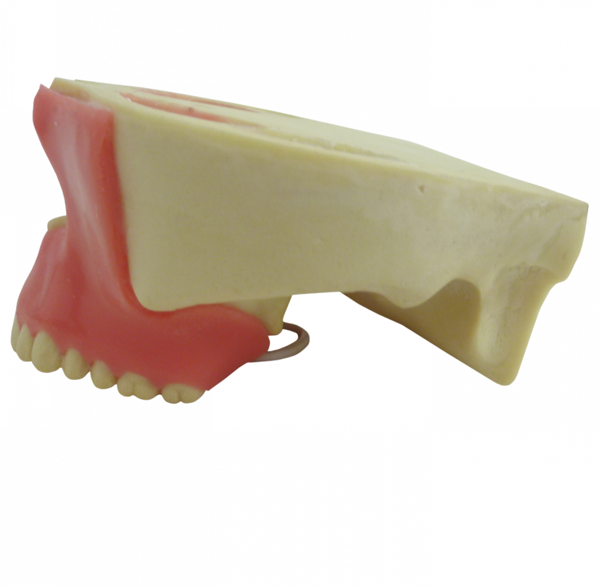 Pode ser fixada no suporte (4020), que permite fazer todos os movimentos necessários de abertura de boca, tombamento e fechamento para o aluno trabalhar com as duas mãos como no paciente real.
