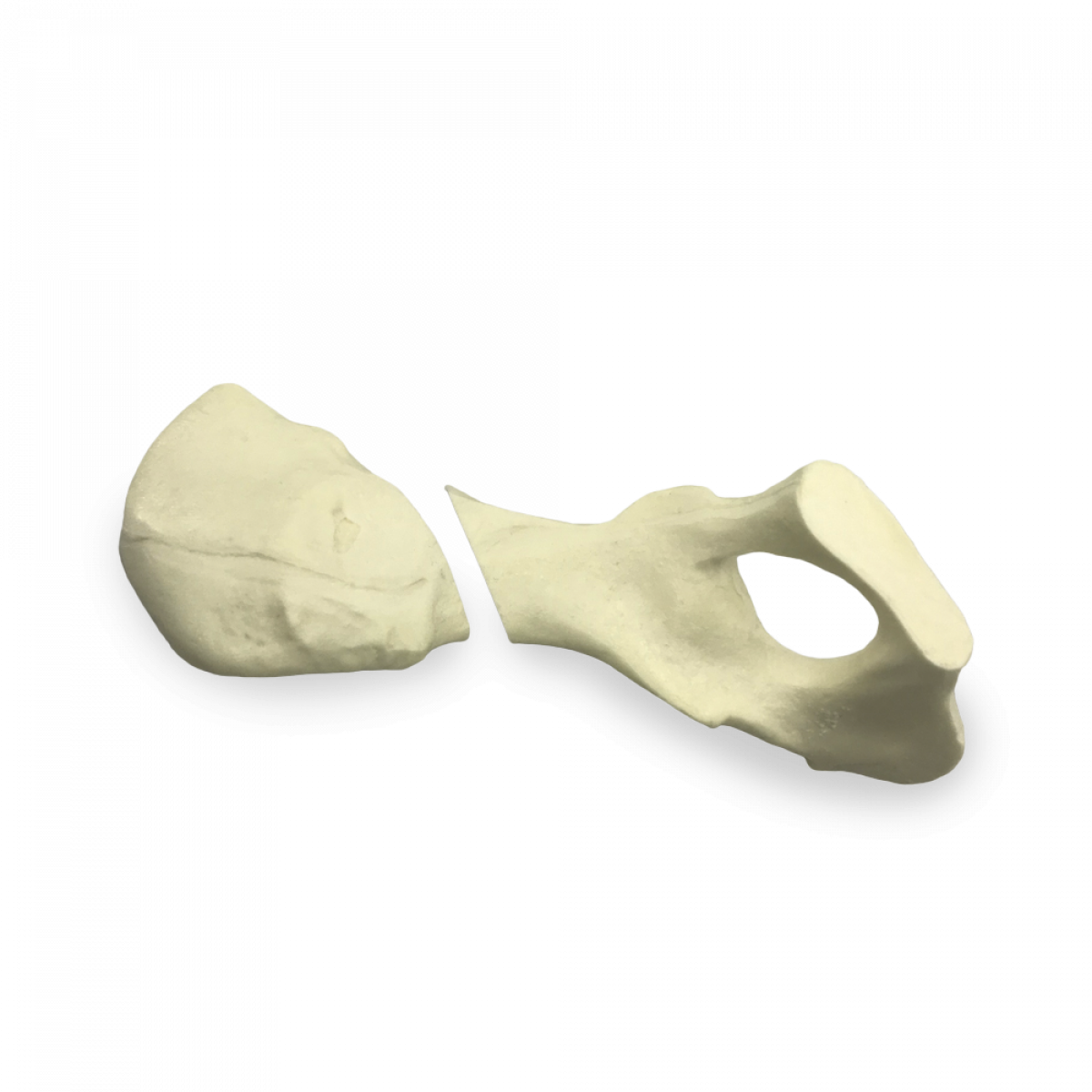 Produzido em poliuretano rígido com estrutura maciça, suporta perfurações, cortes e fixações repetidas, garantindo treinamento seguro e repetitivo. A fratura medial pré-configurada favorece a prática das principais técnicas cirúrgicas utilizadas para correção de fraturas complexas da pelve.